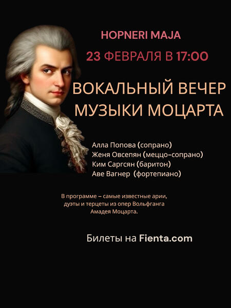 Hopneri maja✅ В концерте принимают участие известные артисты:• Алла Попова (сопрано)